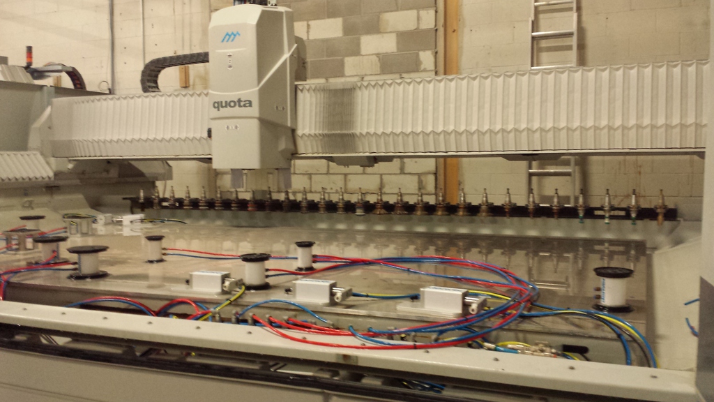 With usable bed size of 61”X 128” and up to 22 tool positions, this machine is the perfect size for kitchen countertop, bathroom vanity, or tombstone fabricators. The Quota 3350 is designed for businesses looking to optimize production with a highly reliable machine that has an excellent quality-price ratio.